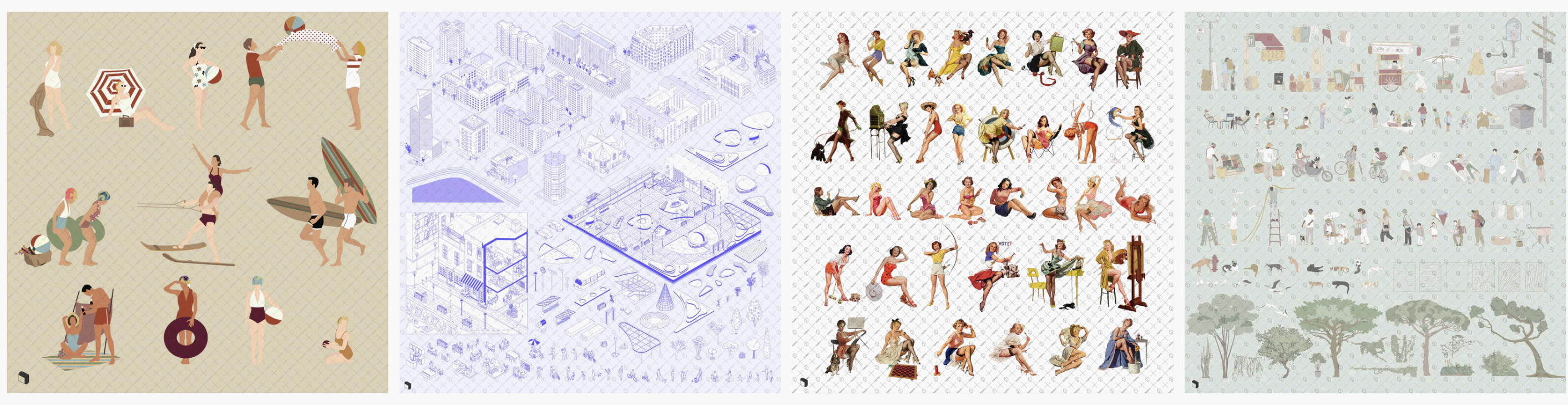 Icograms는 아이소메트릭 벡터 일러스트를 전문으로 제공하는 사이트입니다. 도시, 건물, 지도 등의 디자인에 적합한 리소스를 제공합니다.