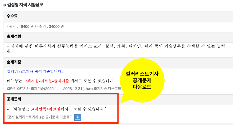 컬러리스트기사 공개문제(2024년도)의 자료 양이 많아 용량이 크기 때문에, 바로 Q-net에서 연결된 링크를 통해 바로 다운로드할 수 있습니다.